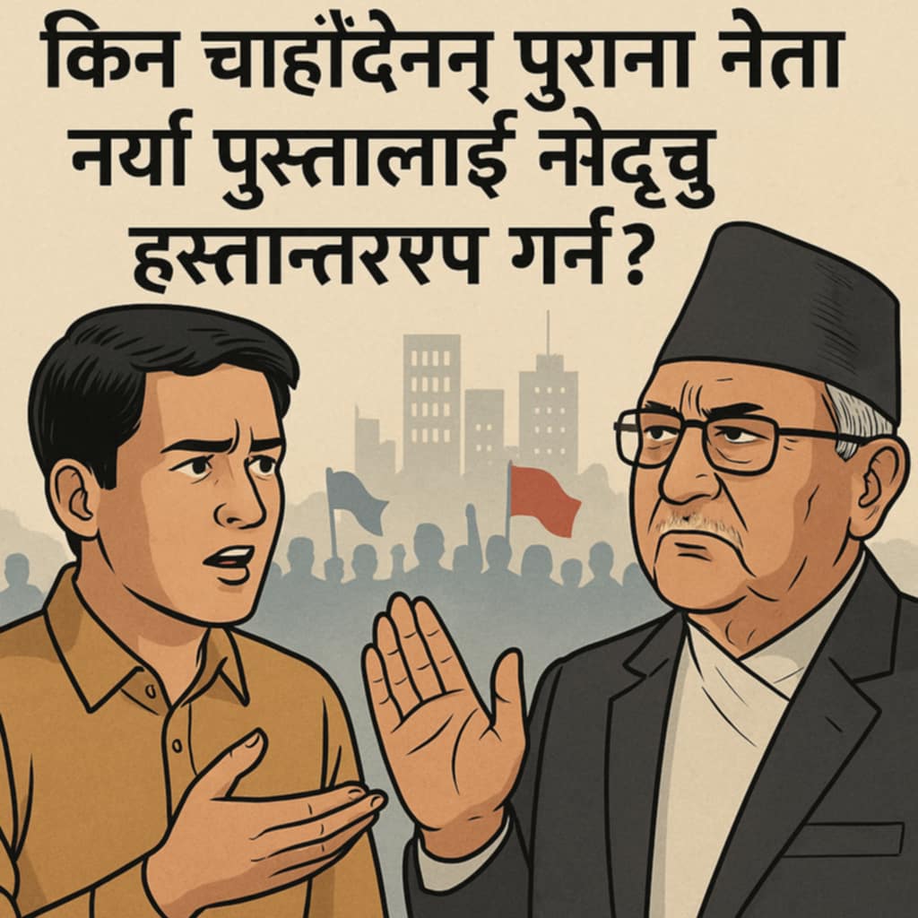 साउन ८ – नेपालको राजनीति अझै पनि उही पुराना अनुहारहरूकै वरिपरि घुमिरहेको छ। लोकतन्त्र स्थापनाको दशकौं बितिसक्दासमेत मुलुकको राजनीतिमा नयाँ पुस्तालाई नेतृत्व सुम्पनुपर्ने बहस जारी छ। तर दलका शीर्ष नेताहरू भने नेतृत्व हस्तान्तरणप्रति उत्साहित देखिँदैनन्।