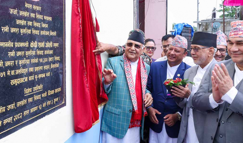 कैलालीः प्रधानमन्त्री केपी शर्मा ओलीले रानी जमरा कुलरिया सिँचाइ आयोजनाको सिँचाइतर्फको थप सिँचाइ, जलविद्युत र प्रसारण लाइनको आज उद्घाटन गरेका छन्।