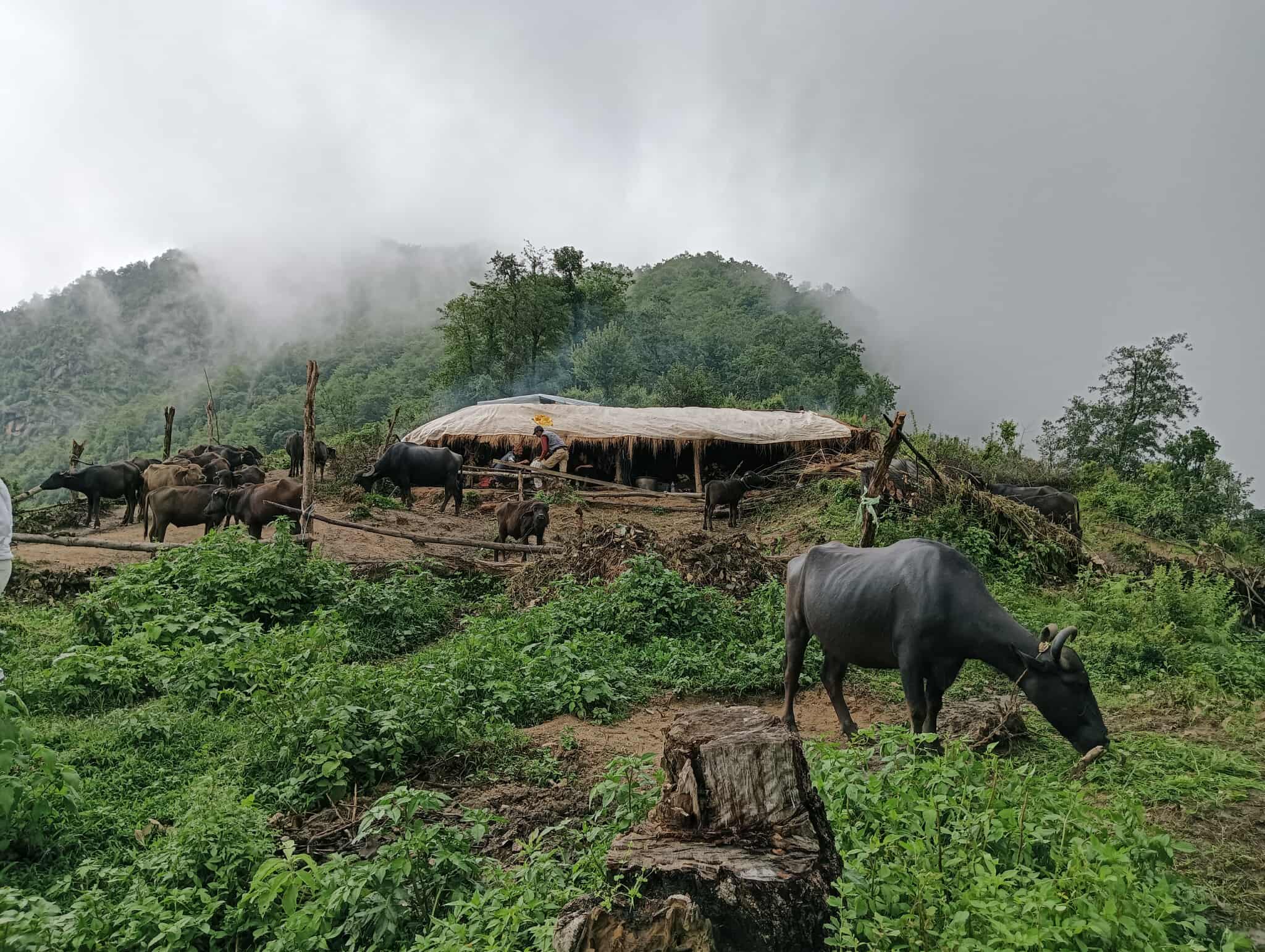 डोटीको काडाँमाण्डौं गाउँपालिका(५ का युवा कृषक गणेश साउँदको भैँसी गोठ हो यो । उनले चार वर्षअघिदेखि भैंसीपालन व्यवसाय सुरु गरे । सुरुवात गर्दा नै उनले चार वर्षको अवधिमा आफ्नो गोठमा ७) भैँसी पुर्याउने लक्ष राखेका थिए । तर गत वर्ष उनका सात भैँसी मरेपछि लक्षमा पुग्न गा¥हो भयो । तर पनि उनले हिम्मत हारेका छैनन्, भन्छन् ‘एक सय भैँसी पालन गर्ने सपना छ मेरो ।’